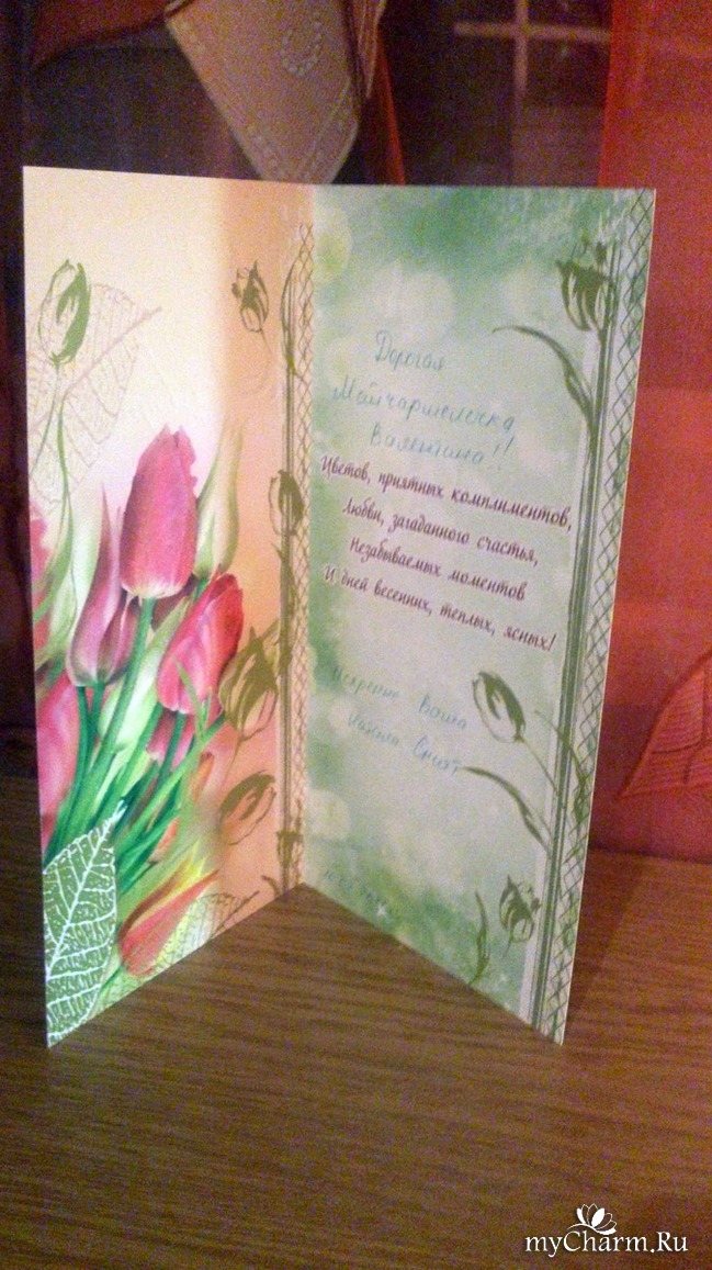 Доброго времени суток всем! Сегодня в почтовом ящике нашла два конверта, а там вот такие красивые открытки с поздравлениями. От Натальи Смитт От Галии /gal4onok/ Спасибо, дорогие девочки за теплые слова и пожелания! Мне очень приятно. Теперь ваши открыточки согревают меня ))) Сегодня пришла открыточка от Марины- Гостюшка... Читать полностью |