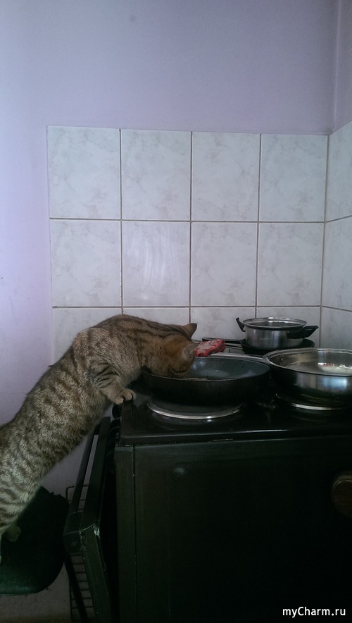 Вчера пришла с работы: на плите что-то типа котлет-драников открытые стоят, муж творил дома сидючи, а сам творец дрых. Я удивилась ещё их наличию, при 4-то котах, и убрала в холодильник. Он выспался, я спросила чего это он их не спрятал?! Ответ: "это из кукурузной муки лепёшки". Усё, вопрос исчерпан