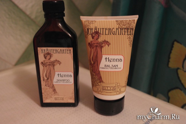 Помыла голову шампунем Henna. Нанесла бальзам Henna.