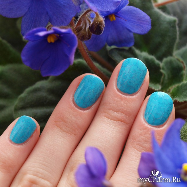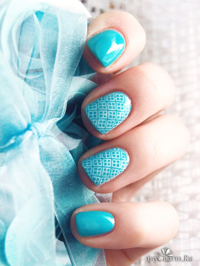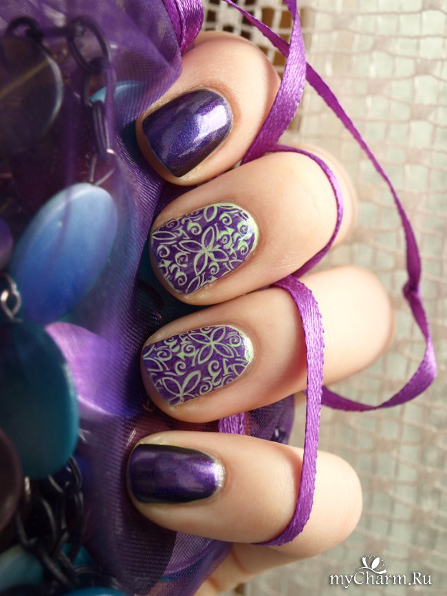 Красивое сочетание фиолетового и мятного, дополненное стемпингом с новой плиточки.