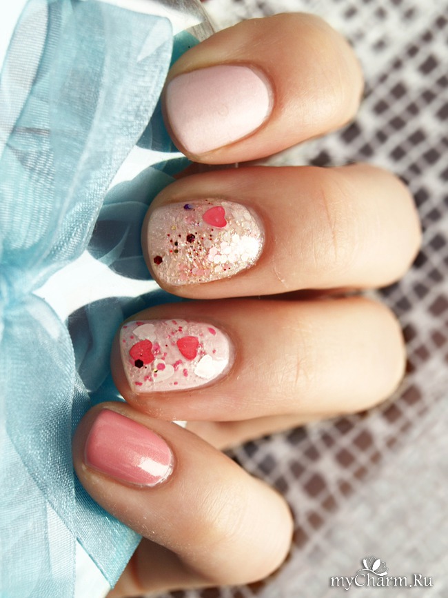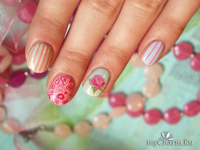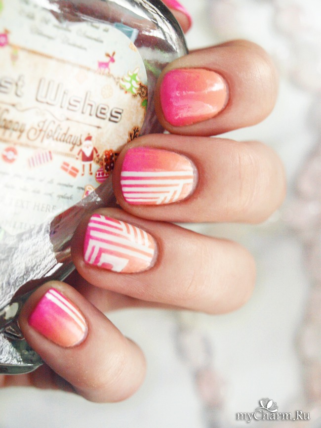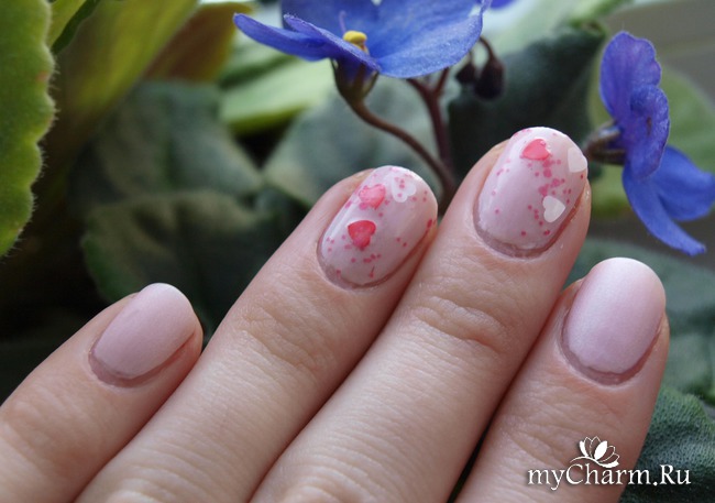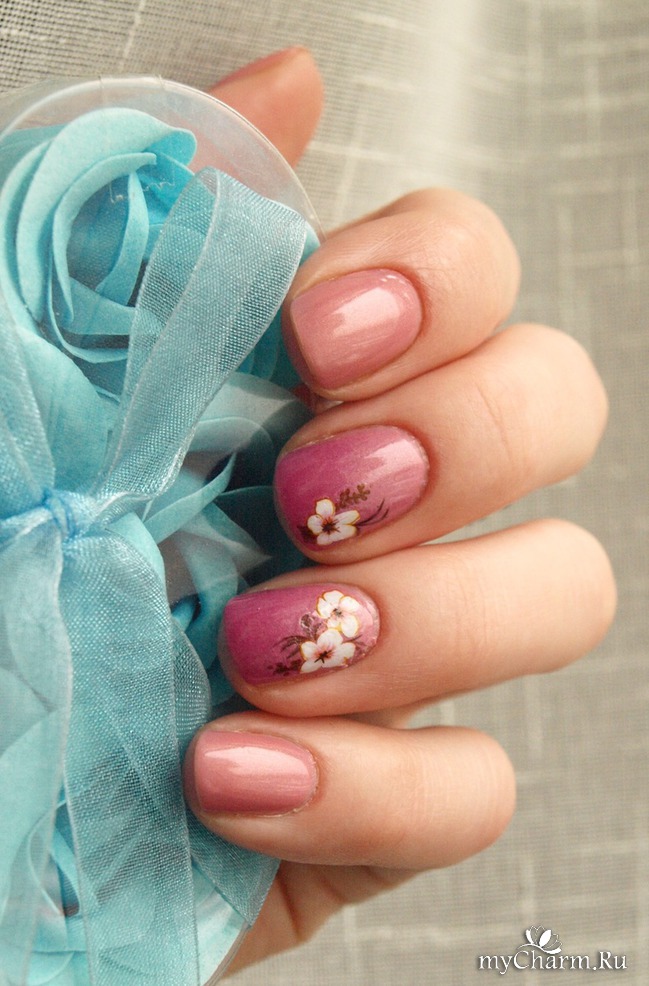• И последний в эту зиму, уже пахнущий весной маникюр, участвующий в теме "Ромашки для Наташки" (https://www.mycharm.ru/post/16651). Мой любимый градиент из женственных розовых оттенков, дополненный цветами=)