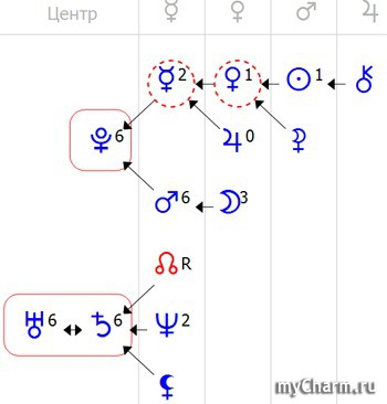 Венера тоже женская планета. Если у вас Венера в центре, то можно сказать, что у вас есть или вы должны их развивать склонности к рисованию. А вообще Венеру тянет к прекрасному, она должна творить красоту вокруг себя, для женщины идеально заниматься рукоделием, если не далает этого, то появляется склонность скупать наряды, предметы обихода, все потому что ей надо выпустить эту энергию. По себе знаю, что если я не занимаюсь вязанием, то через время меня очень активно тянет на шопинг. ))) так, что по-мне лучше вязать, деньги целее будут. Еще одна особенность Венеры, она очень любит, чтобы ее хвалили. Именно эта планета без хвалы не чувствует всей полноты жизни и начинает грустить, так что если у кого-то из ваших близких эта планета, хвалите их, для них это очень важно.