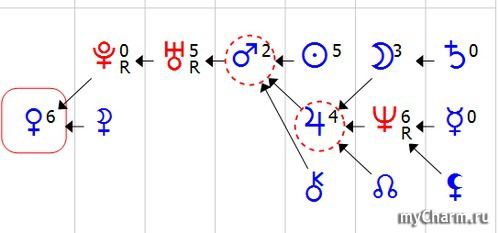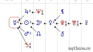 Вверху значок планеты-покравителя.