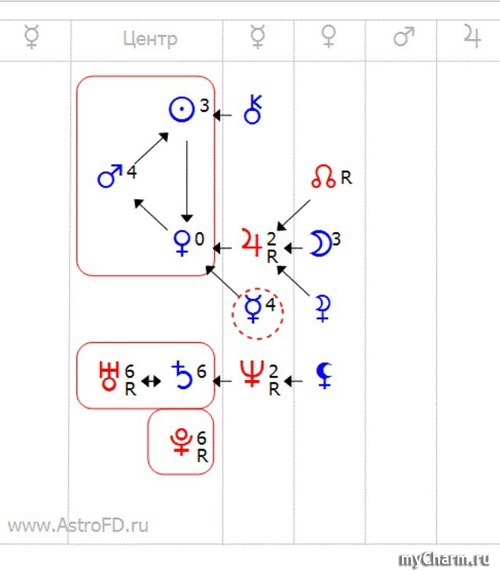 Марс это очень мужская планета и когда она находится в центре у женщины это не очень хорошо. Астрогор вообще на таких женщинах ставит крест и говорит, что они не способны жить с мужчиной под одной крышей. Я бы не была так категорична. Но такие женщины часто очень социально активны, им свойственен напор и агрессия. Здесь главное дать выход энергии, один из вариантов это активный спорт, лучше выпустить пары туда, а дома быть покладистой и включить другие планеты.