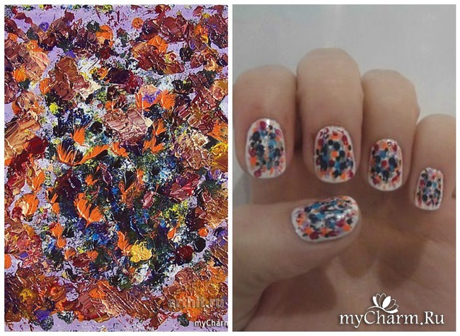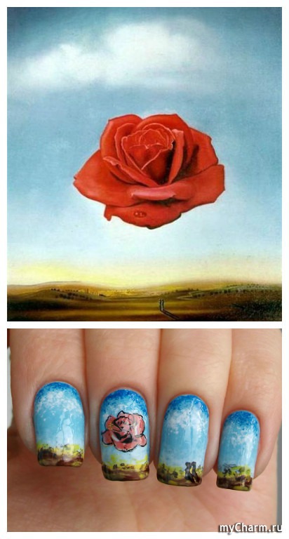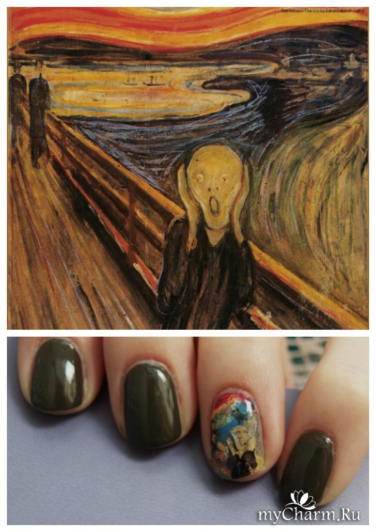 Все работы уместились в один пост. Я решила, что удобнее будет рассматривать маникюр в коллаже с источником вдохновения. Каждое фото подписано в каком художественном стиле выполнено произведение, кто автор и название (если известно)