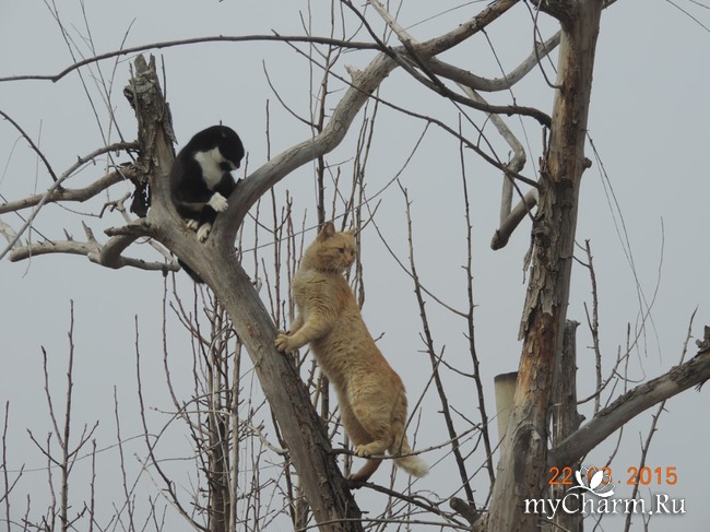 не зря невеста за ним гоняется, аж на верхушку дерева от нее залез