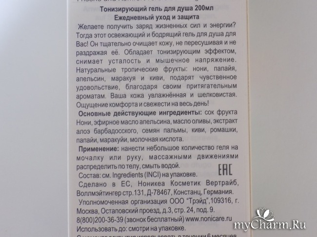 Располагается гель в большой тубе, объемом 200мл. Стоимость на официальном сайте Ноникеа – 350 рублей.
