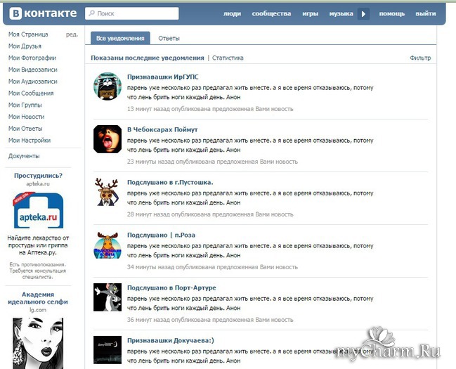 В общем, "пилики" продолжились - один за другим. И всё - с разных страниц типа признавашек/подслушано. Причем, разных городов, к которым я вот вообще ну никакого отношения не имею. Я даже на страницы этих сообществ ни разу не заходила