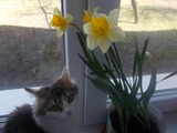 А у меня на подоконнике кошечка с нарциссом расцвела