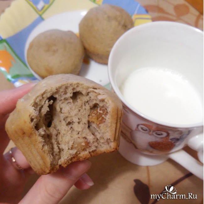 На следующее утро, пока еще были в наличии несколько оставшихся вкусняшек, я насладилась вкусным маффином с банановыми нотками и изюмом, запивая всё молочком!
