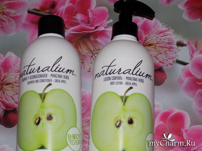 У меня в ванной на полочке стоит не только Шампунь-кондиционер Naturalium «Зеленое яблоко», но и Питательный лосьон Naturalium из этой же «яблочной» серии.