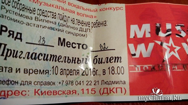 Вот сейчас пришла с благотворительного концерта. Все деньги, собранные за продажу билетов, а так же просто пожертвования (а такие были, и не малые) пойдут на реабилитацию восьмилетнего мальчика - Вилена.