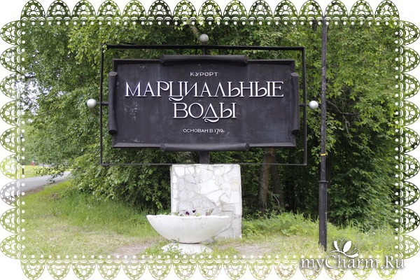 Следующий по счету, но никак не по значимости, это санаторий "Марциальные воды", расположенный в одноименном поселке. Он находится в непосредственной близости к известнейшим марциальным источникам. Их чудодейственная сила была обнаружена Петром Великим в 1714 году. Царь приезжал сюда несколько раз. В то время населенный пункт назывался деревня "Дворцы", естественно из-за находящейся там царской резиденции.