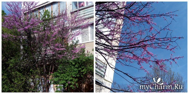 А это деревце усыпано маленькими сиреневыми цветочками.