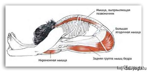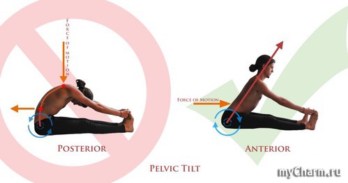 Скрутки могут помочь. Только следи, чтобы позвоночник прямой был. И в Пашчимотанасане вытягивая позвоночник, начиная сначала прижимать низ живота к бёдрам, потом подтягивая все тело.