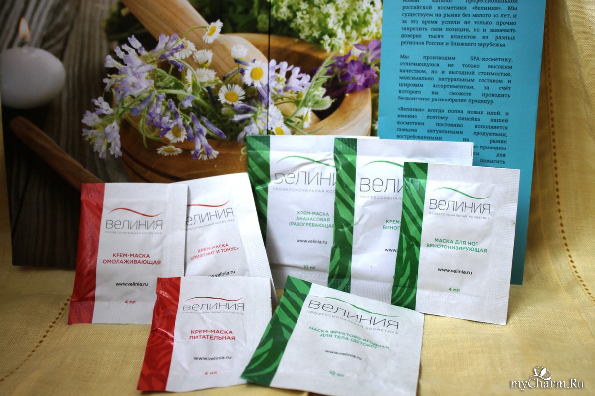 Семь заветных баночек для ухода за телом и волосами ждут своей очереди, но так хочется поскорее все открыть и использовать. А еще, щедрая Велиния вложила мне много разных пробников и каталог продукции