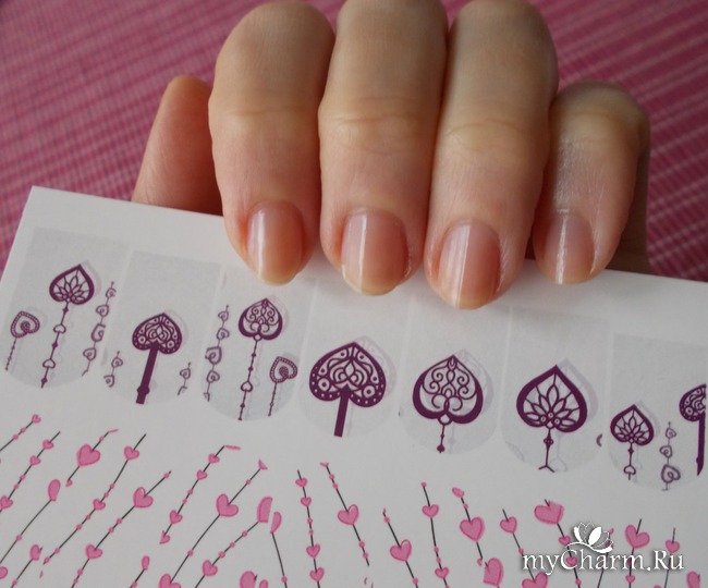 Мне очень понравились этии сердечки. Но скорее всего мне придётся порадовать ими кого-нибудь из моих подруг, т. к. они (сердечки) просто не поместятся на мои ногти, даже если я их отращу подлиннее. Они у меня очень маленькие, просто детского размера. Вот фото для сравнения: