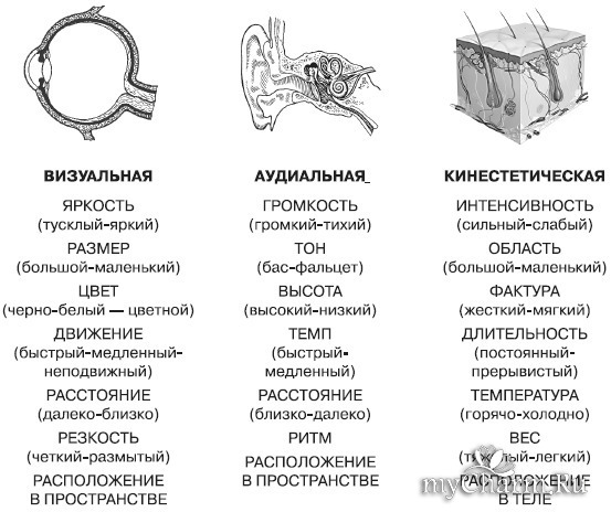 У человека существует четыре основных репрезентативных системы обработки информации: