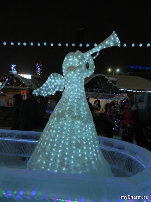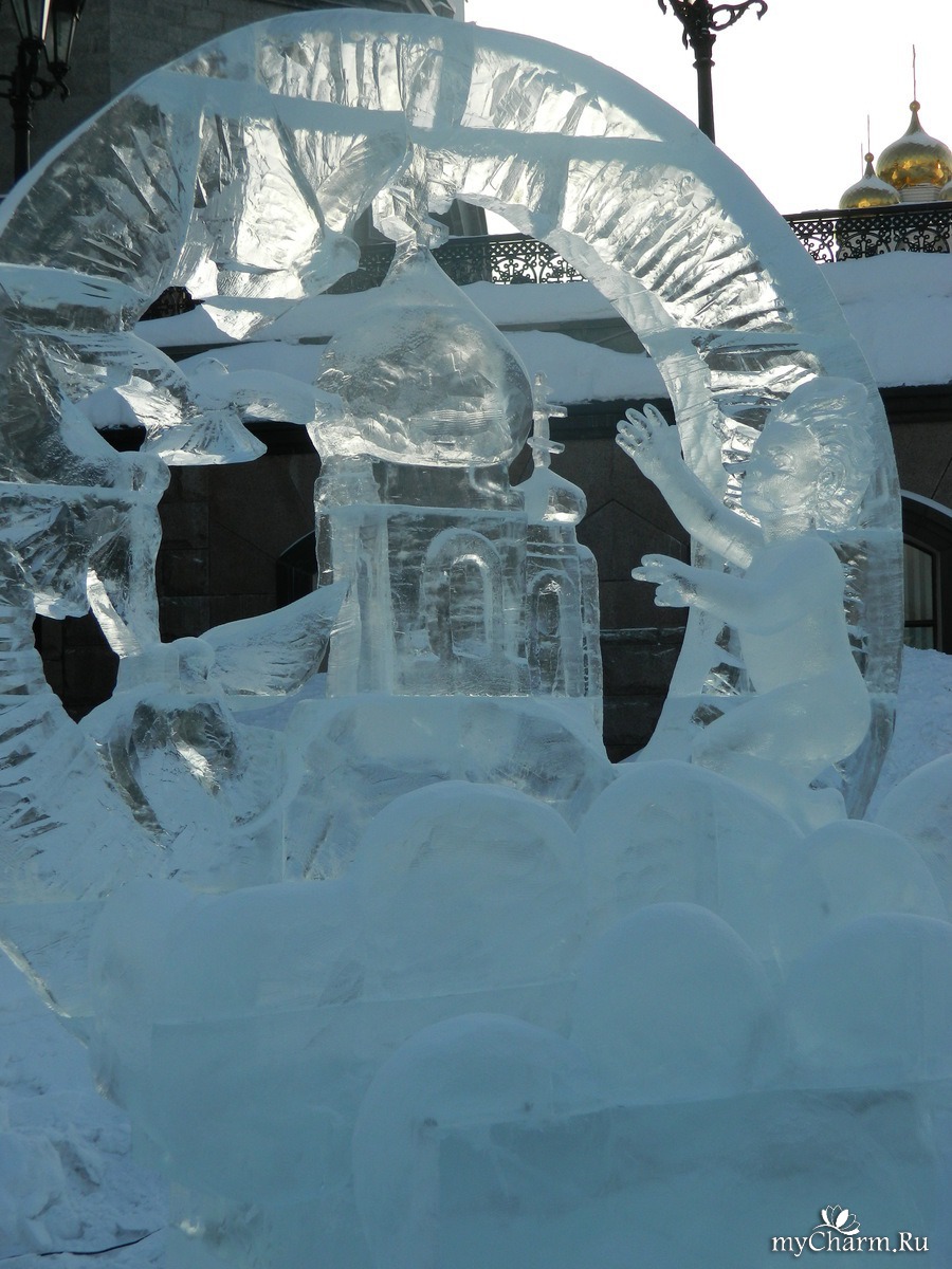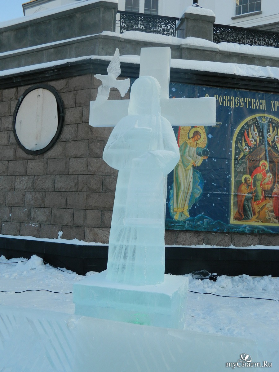Внутри я не фотографировала. А вот на улице с удовольствием запечатлела ледяные скульптуры: там проходил фестиваль ледовой скульптуры «Вифлеемская звезда».
