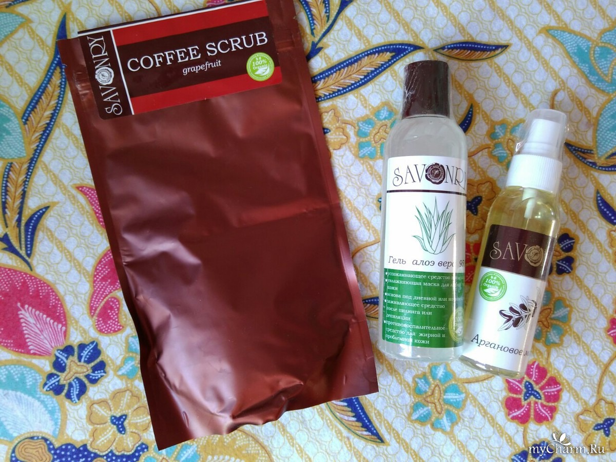 Кофейный скраб с ароматом (и не только ароматом!) грейпфрута, гель Алоэ и аргановое масло. Скажу по секрету, средства я могла выбрать сама