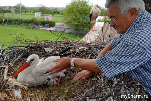 Пока аист в Африке, за Маленой ухаживает бывший школьный уборщик. Аисты построили свое любовное гнездышко прямо на крыше его дома, который находится в маленькой деревеньке Бродски-Варош, Хорватия. Именно благодаря ему стало известно об этой истории настоящей любви.