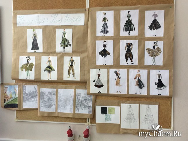 Это стенд с этапами моей работы. Внизу слева тот самый рисунок Нью-Йорка.))