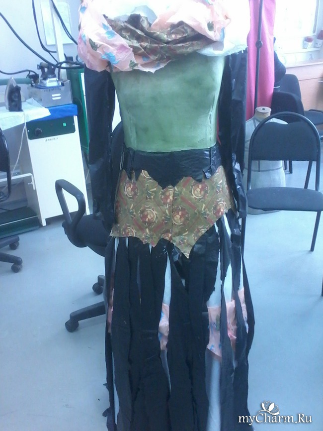 Недавно была практика. Мы занимались наколкой. Это не татуировки, как многие сразу думают Это наколка ткани на манекен и превращение её в наряд.))) Это долгий процесс длиной в две недели.