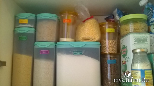 Полочку с крупами тоже разобрала, благо мама подарила мне отличный наборчик контейнеров: