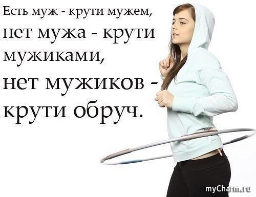 а у меня есть мужик и я не ленюсь крутить обруч по 20 минут, правда в это время мой муж не может попросить поесть, не может близко подойти так как есть риск для его жизни, и еще ему стыдно.