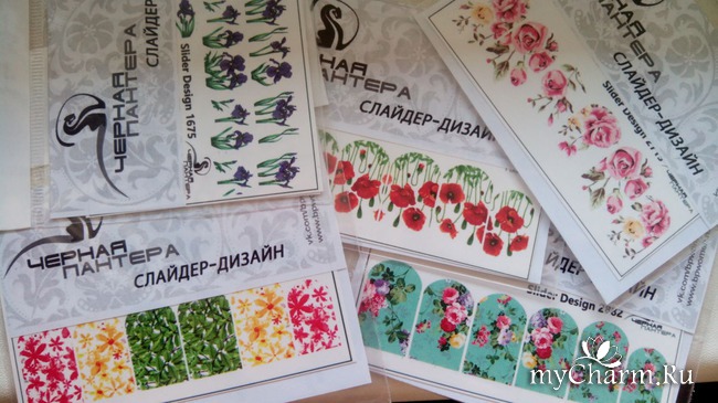 И снова здравствуйте! Еще я на этой неделе получила подарок с сайта за участие в маникюрных флэшмобах. Вот такие слайдер-дизайны от Черной пантеры: