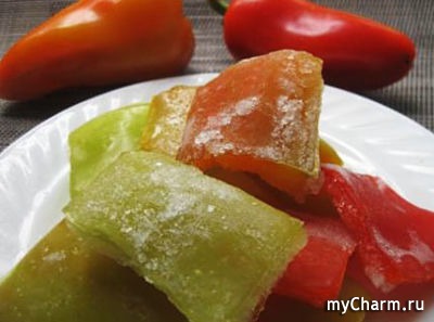 Заморозка перца может производиться целиком, в очищенном виде (без плодоножки и семян) и в нарезке (для заправки супов, рагу, соусов). Плоды укладывают в полиэтиленовые мешки, поглаживающими движениями руки из них удаляют воздух. И завязывают, причем, не узелком, а петелькой, чтоб потом без труда открыть. Из-за сильного характерного запаха замороженные перцы в холодильнике рекомендуется держать отдельно от других заготовок. Или упаковывать, как следует, в несколько пластиковых пакетов.