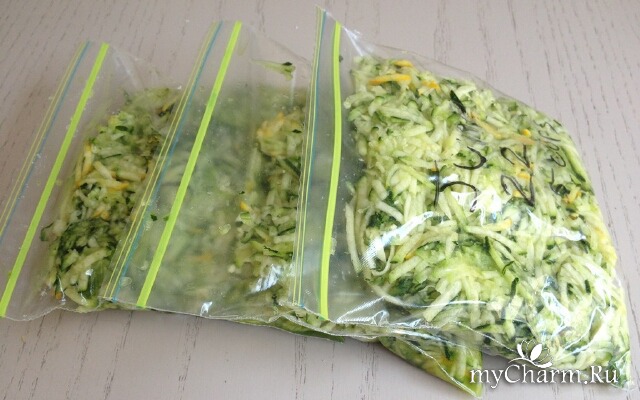 Чтобы сократить время приготовления детского пюре, кабачки очищают от кожицы, семян и натирают на крупной терке, слегка отжав выделившийся сок. Раскладывают порционно, в подходящую тару (в формочки для кексов, баночки из-под йогурта). Когда замерзнут, вытряхивают и хранят в плотно закрытых мешочках из полиэтилена. Перед приготовлением не размораживают.