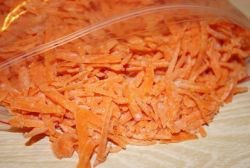 Заморозка моркови кусочками требует бланширования. Нарезанный корнеплод на 3-4 минуты погружают в кипяток, затем обдают холодной водой, обсушивают, доводят до комнатной температуры. И только после этого фасуют в пакеты и помещают в морозилку. Точно также поступают со стручковой фасолью, зеленым горошком, баклажанами, цветной капустой.