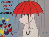 Очень милая, яркая и жизнерадостная. Текст с открытки переводится так: "После дождя всегда светит солнце"! Немного философии от муми-троллей