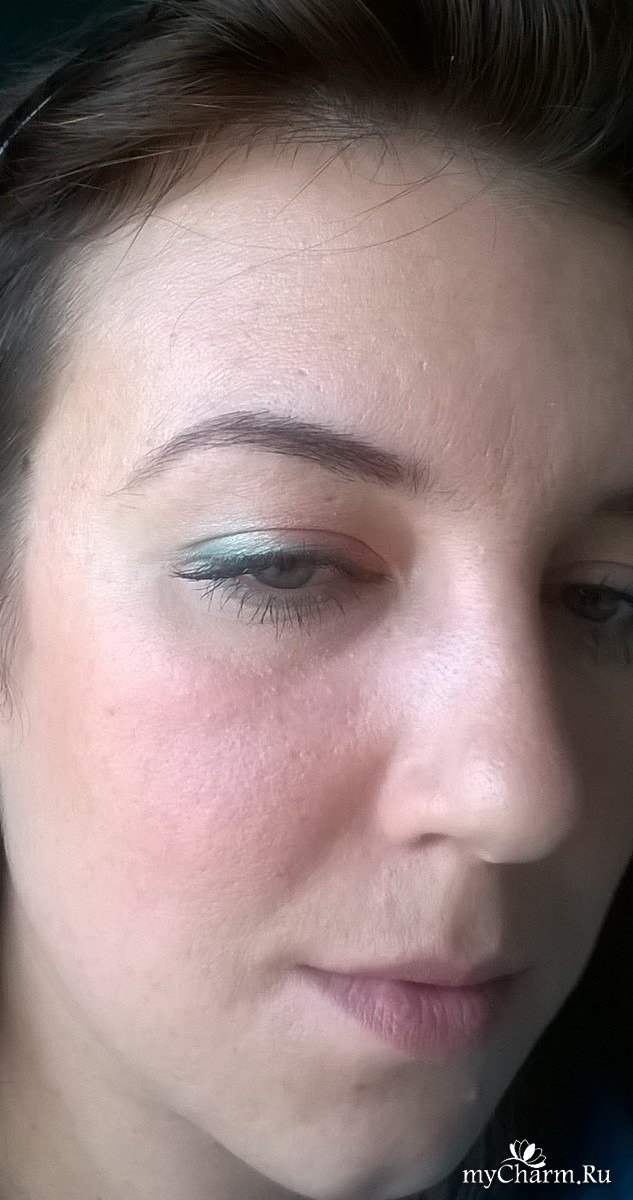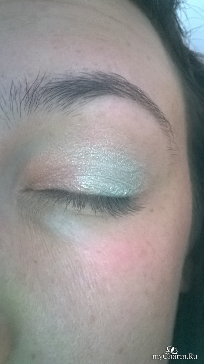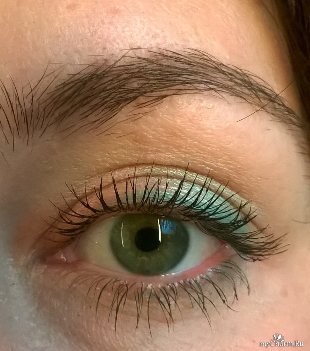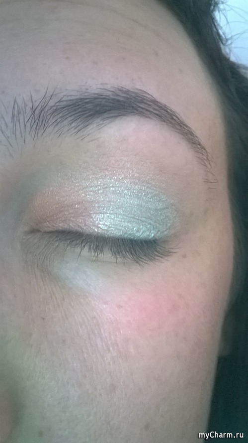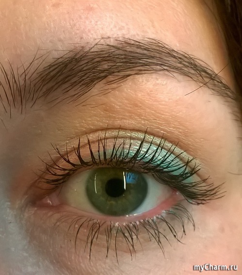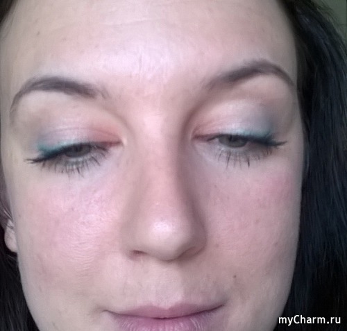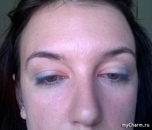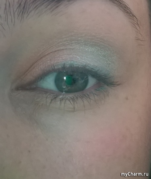 Вторые тени у меня бледно бирюзового цвета, их я наношу от середины, до края века.