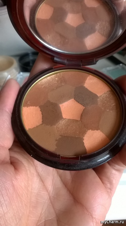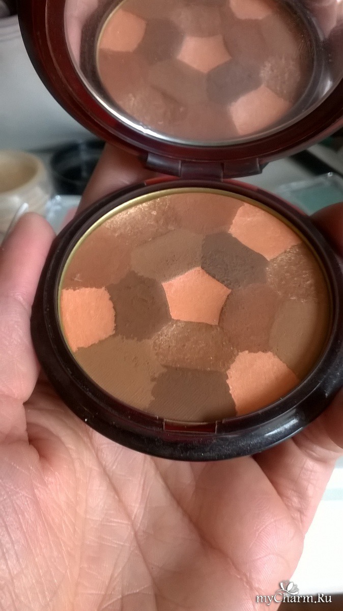 Придать лицу немного сияния, поможет компактная пудра с эффектом загара, оттенок 02 Brunettes от Гуерлаин.