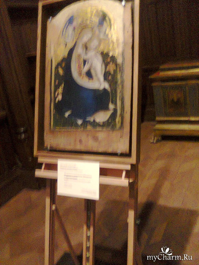 Но больше всего меня звал другой шедевр, я глаз не могла оторвать от небольшого изображения на деревянной доске, размер всего полметра на сантиметров 30-40. Это была Мадонна с куропаткой Пизанелло (не ручаюсь за правильность написания). Она завораживала и манила к себе эта местами потрескавшаяся с облезлой краской, язык не поворачивается назвать доска. Свет неземной исходит от такого изображения.