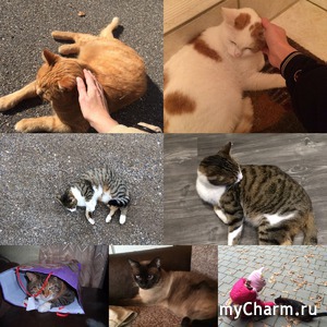 В прилагаемом коллаже собраны кошки, которых я встречаю в отелях во время деловых поездок (белая с рыжими пятнами), кот моей свекрови, который отдыхал с нами на турбазе (внимательный сиамыш), кошка мой мамы (курильский бобтейль в бумажном пакете), кот Антон из соседней аптеки (крупный полосатик с белой грудью и брюхом), кошки из детского сада моей дочки (одну из них она кормит на фото).