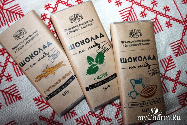 «Шоколад на меду» отличается внешне своим «эко» стилем. Без пафоса, ярких пятен и гламура. Приятное неброское оформление, понятные рисунки добавок и разнообразие вкусов. Сейчас действительно есть из чего выбрать и загореться желанием перепробовать все. Этот шоколад идеально подойдет деткам, поскольку состав выдержит любую критику.