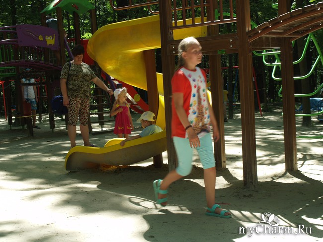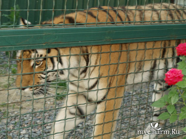 Сам экопарк содержится в образцовом порядке, животные ухоженные, вольеры у них большие. Вокруг клеток территория облагорожена и высажены цветы, и в основном розы различных сортов. Есть и детская площадка с различными горками, качелями-каруселями, Она то больше всего и впечатлила нашего сына