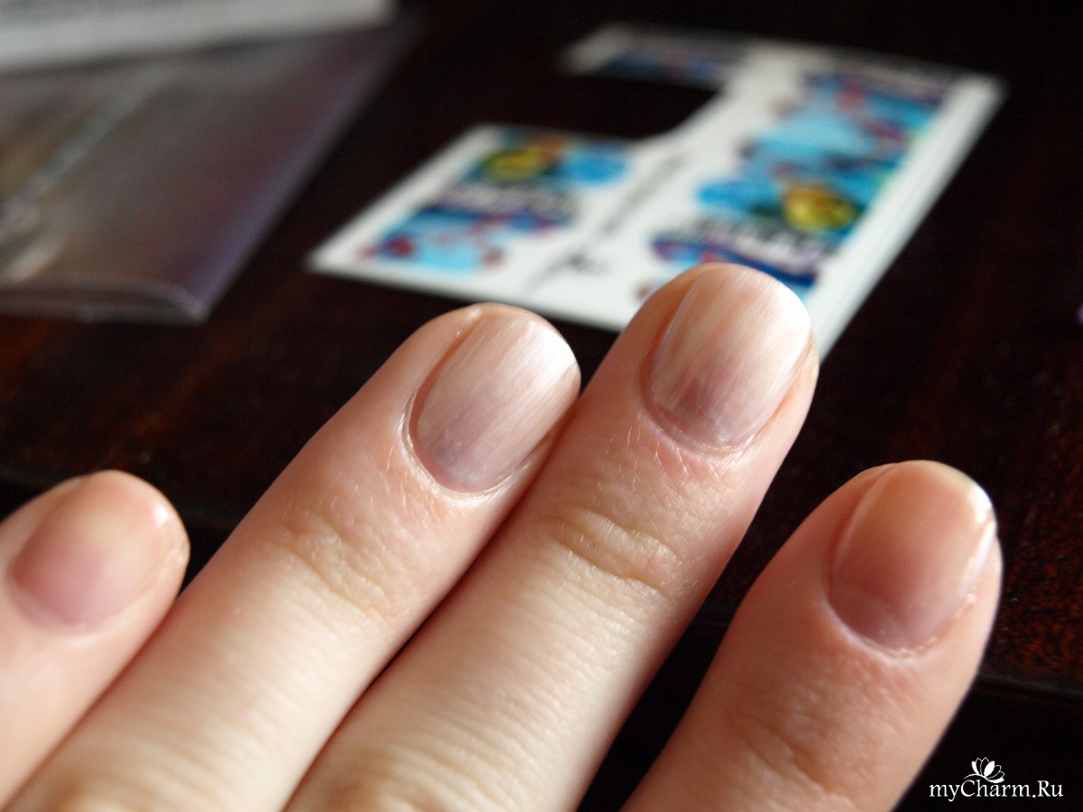 Прикладываю пленку на ноготь и начинаю разглаживать. Пленочка, как и обещалось, действительно тончайшая. Наверно самая тонкая из всех, которые у меня когда-либо были. Прекрасно разглаживается, легко убираются складочки
