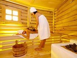 Расскажу я Вам как я сама постепенно приучала себя и свой организм к бане. Надо понять, что БАНЯ и САУНА - это две разные вещи. БАНЯ - это мокрый пар, поддающий на раскаленные камни и оседающий медленно капельками на кожу. Вот тогда можно брать веник и без жалости бить себя веником по всему телу. САУНА - это сухой жар, где тело само от температуры начинает потеть. Я сама не очень люблю сауну. У меня от такого сухого жара сильно болит голова.
