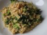 Когда киноа уварилось, перемешиваю с брокколи, соусом, а сверху посыпаю дроблеными кедровыми орешками, травяными приправами.