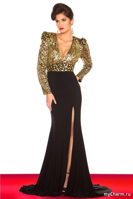 Добавьте золота. Одним из самых лучших дополнений к длинному черному платью станет золотой аксессуар. Это может быть золотой клатч, браслет, пояс, массивные сережки. Посмотрим, что выбирают звезды.