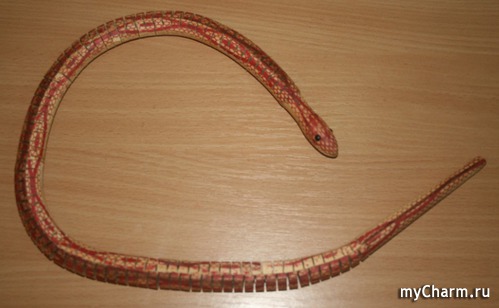 В моем детстве были такие змейки - берешь ее за бока и она начинает шевелиться, как живая. Эта, к сожалению, так не шевелится - слишком большая и тяжелая. Но старший счастлив