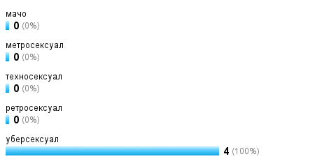 Мой первый муж был 100%-м уберсексуалом,судя по характеристике,в быту такой мужчина очень и очень хорош.А вот второму мужу "названия" я не нашла,но от уберсексуала процентов 70 имеется.