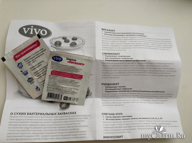 Внутри 2 пакетика с заквасками и подробное описание, инструкция на всех поверхностях.