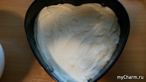 2/3 смеси положить в форму, поверх смеси выложить йогуртовую смесь.