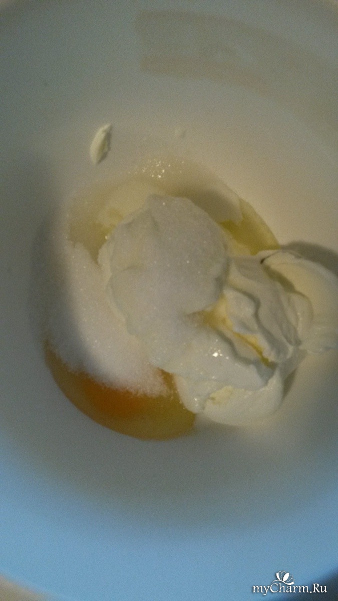 2. Йогурт смешать с содой,50 г сахара,1 яйцом и ванилином.
