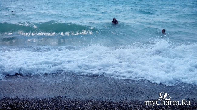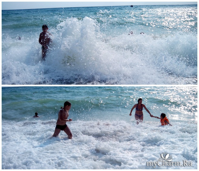 Море опять встретило нас штормом. Зато вода была очень теплой.